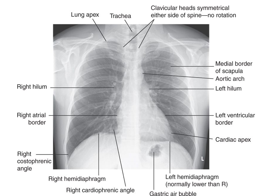 | Costophrenic angles | Acute and well-defined? (Pleural fluid or thickening, if not) |