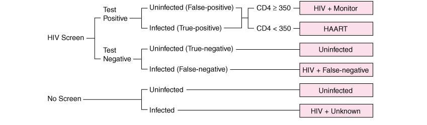 Basic structure of decision model used to evaluate strategies for screening for HIV in the general population. HIV, human immunodeficiency virus; HAART, highly active antiretroviral therapy.