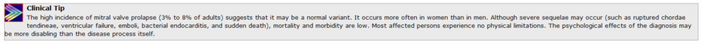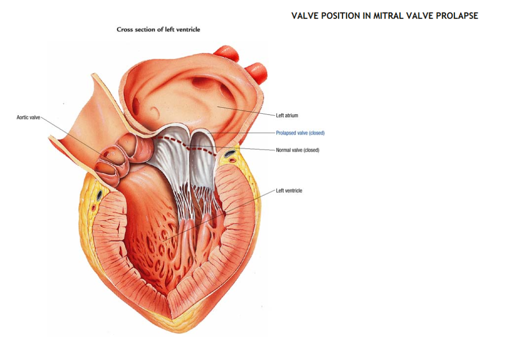 Mitral valve prolapse is also called systolic click-murmur syndrome and floppy mitral valve syndrome. It’s probably a congenital abnormality.