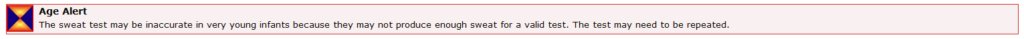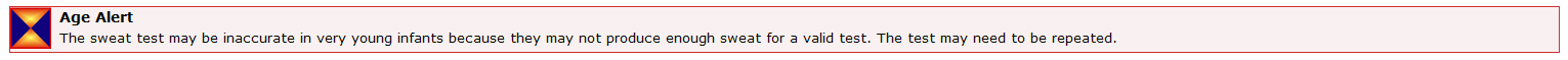 • Two sweat tests (to detect elevated sodium chloride levels) using a pilocarpine solution (a sweat inducer) and presence of an obstructive pulmonary disease, confirmed pancreatic insufficiency or failure to thrive, or a family history of cystic fibrosis.
